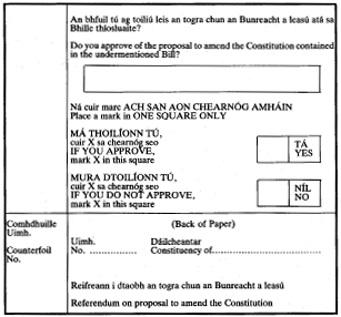FORM OF BALLOT PAPER AT CONSTITUTIONAL REFERENDUM